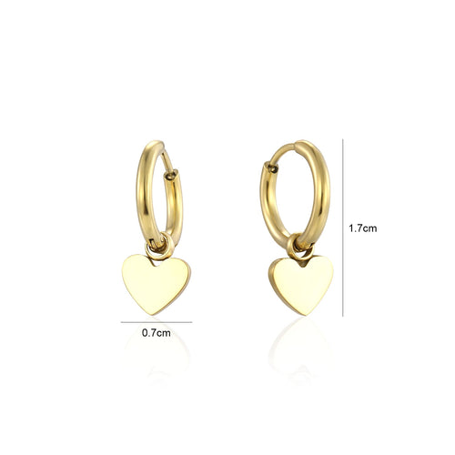 Gouden oorbellen met klein hartje. Deze oorbellen zijn 1.7cm lang. Gemaakt van Hoogwaardig Stainless Steel.