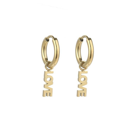 Gouden oorbellen LOVE. Deze oorbellen zijn 2.3cm lang. Gemaakt van Hoogwaardig Stainless Steel.