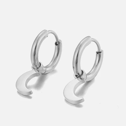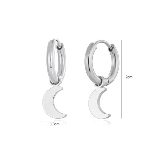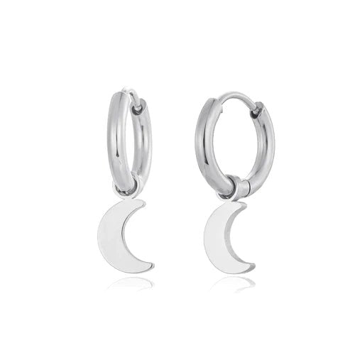 Zilveren oorbellen met maan bedeltjes. Deze oorbellen zijn 2cm lang. Gemaakt van Hoogwaardig Stainless Steel.