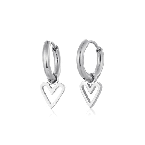 Zilveren oorbellen met hartje open. Deze oorbellen zijn 1.8cm lang. Gemaakt van Hoogwaardig Stainless Steel.