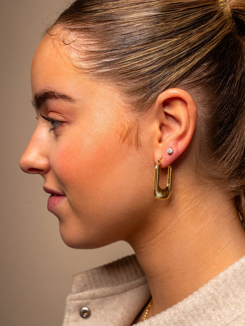 Gouden oorbellen. Deze oorbellen zijn 3.2cm lang. Gemaakt van Hoogwaardig Stainless Steel.