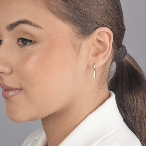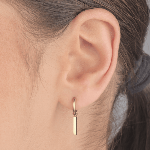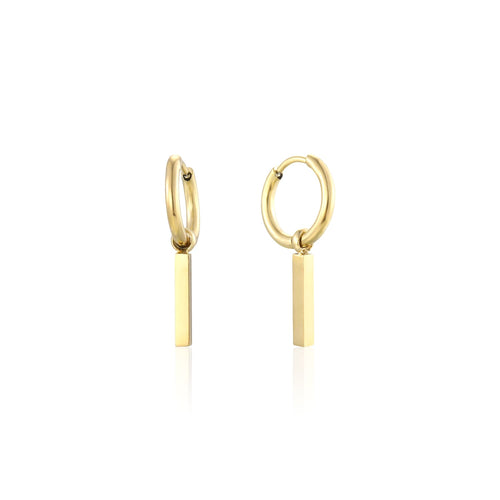 Gouden oorbellen met staafje. Deze oorbellen zijn 2.3cm breed. Gemaakt van Hoogwaardig Stainless Steel.