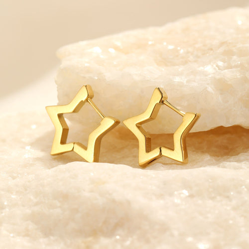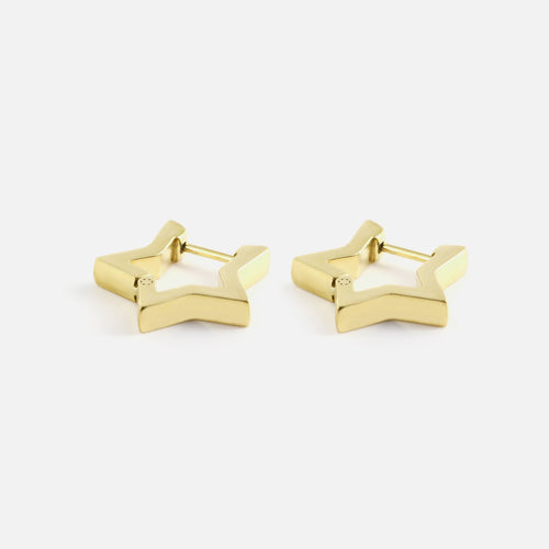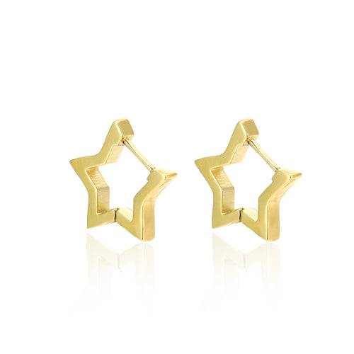 Gouden ster vormige hoop. Deze oorbellen zijn 1.6cm lang. Gemaakt van Hoogwaardig Stainless Steel.