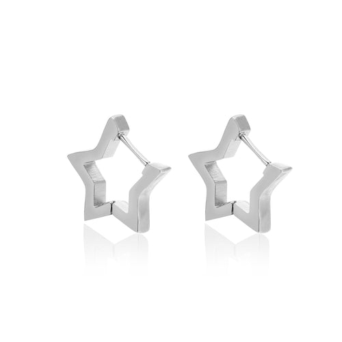 Zilveren ster vormige hoop. Deze oorbellen zijn 1.6cm lang. Gemaakt van Hoogwaardig Stainless Steel.