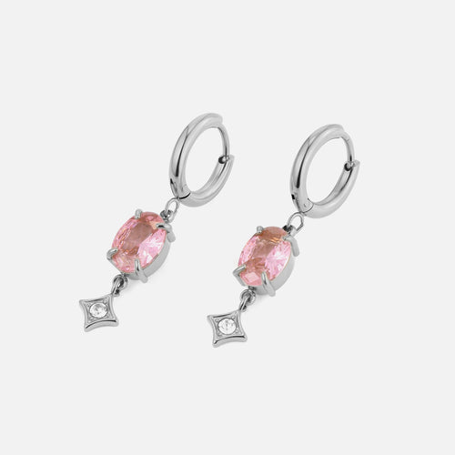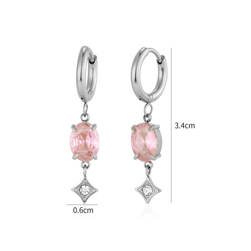 Oorbellen zirkonia roze zilver zijn 3,4cm lang en 0,6cm breed. Gemaakt van hoogwaardig stainless steel.