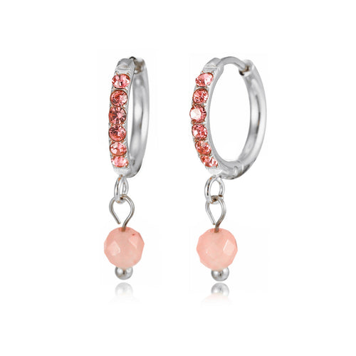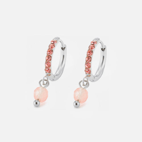 Zilveren oorbellen met roze steentjes. Deze oorbellen zijn 2.3cm breed. Gemaakt van Hoogwaardig Stainless Steel.