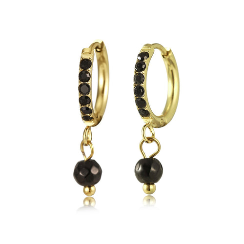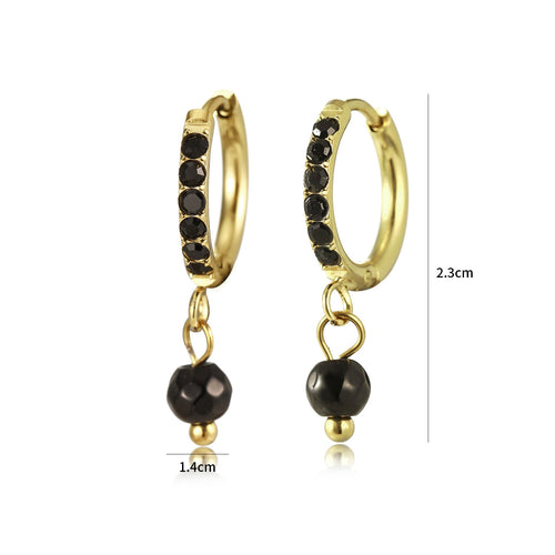 Gouden oorbellen met zwarte steentjes. Deze oorbellen zijn 2.3cm lang. Gemaakt van Hoogwaardig Stainless Steel.