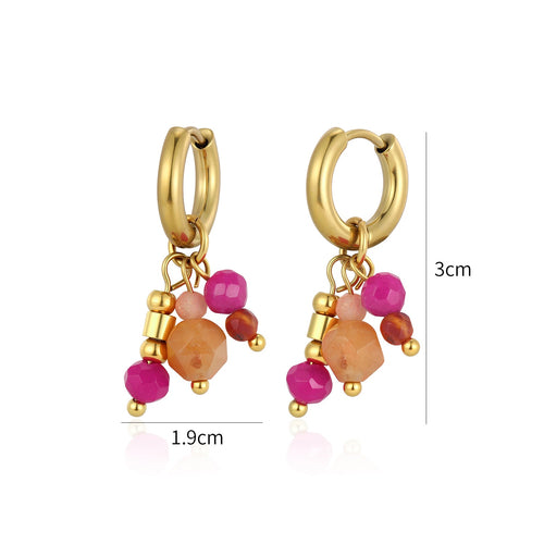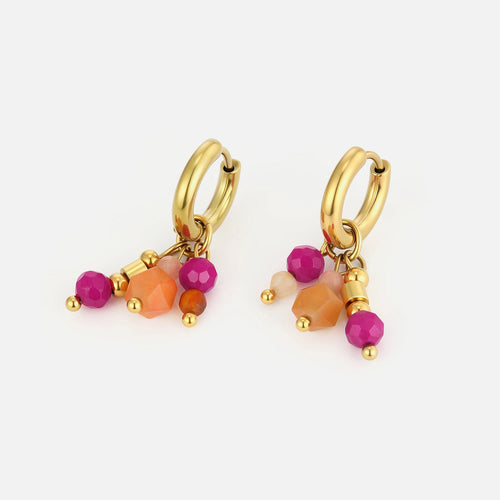Oorringen gekleurde kralen goud is 3cm lang en 1.9cm breed. Gemaakt van hoogwaardig stainless steel.