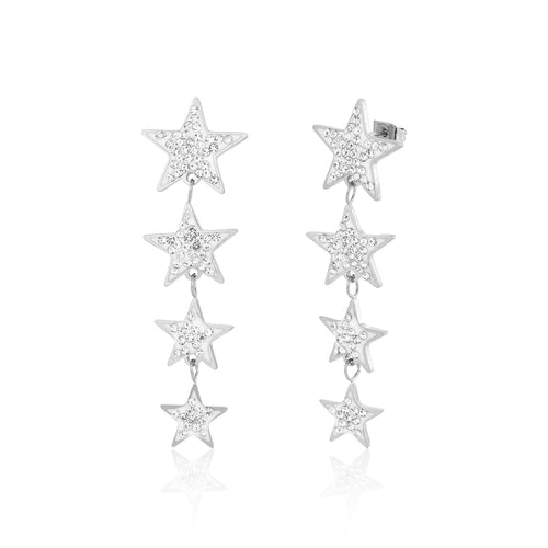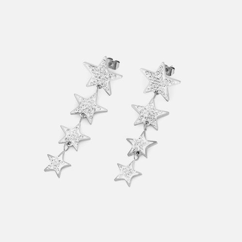 Zilveren statement oorbellen met hangende sterren. Deze oorbellen zijn 5.4cm breed. Gemaakt van Hoogwaardig Stainless Steel.