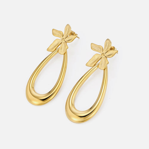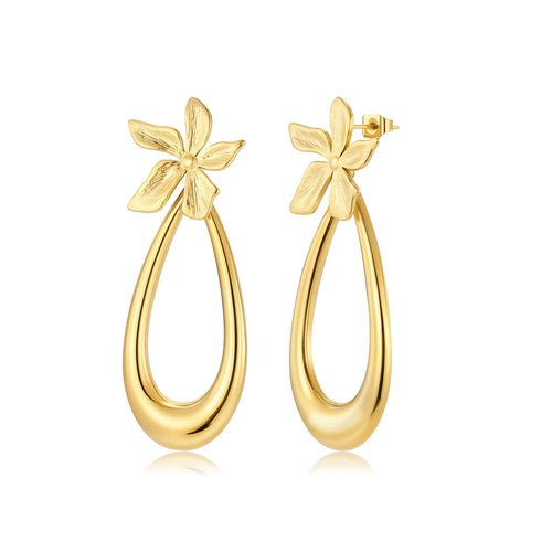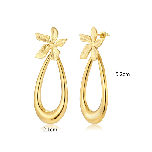 Gouden oorstekers bloem druppel. De oorstekers zijn 5,2cm lang en 2,1cm breed. Gemaakt van hoogwaardig stainless steel.