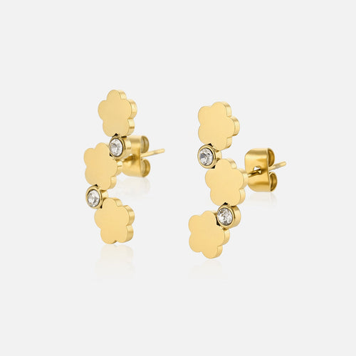 Oorstekers bloemen met steentjes goud zijn 2.1cm lang en 0.8cm breed. Gemaakt van hoogwaardig stainless steel.
