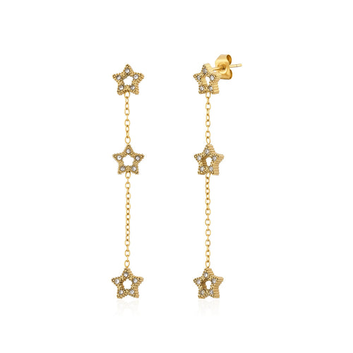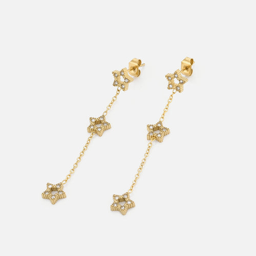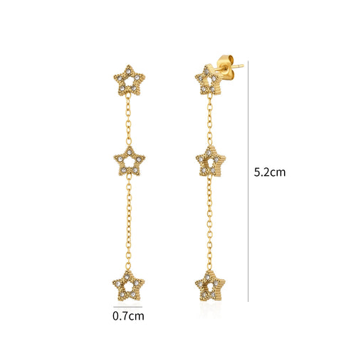 Oorstekers drie hangende sterren goud zijn 5.2cm lang en 0.7cm breed. Gemaakt van hoogwaardig stainless steel.