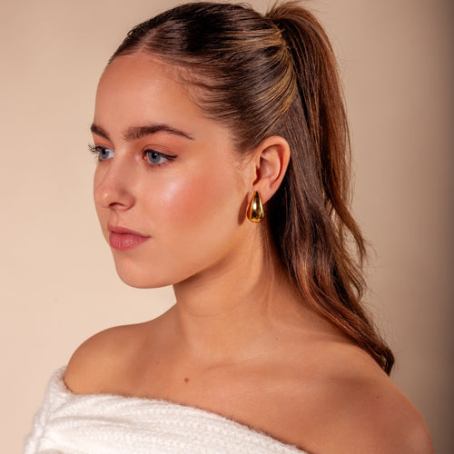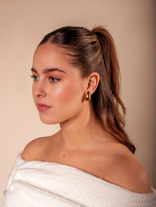 Gouden druppel oorbellen. Deze oorbellen zijn 2.5cm lang. Gemaakt van Hoogwaardig Stainless Steel.