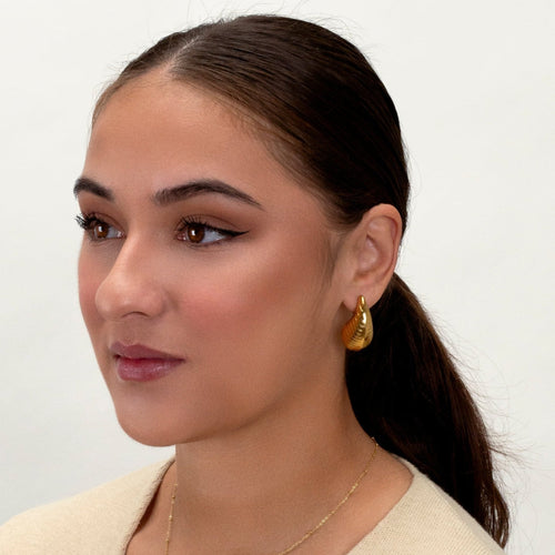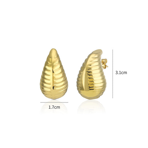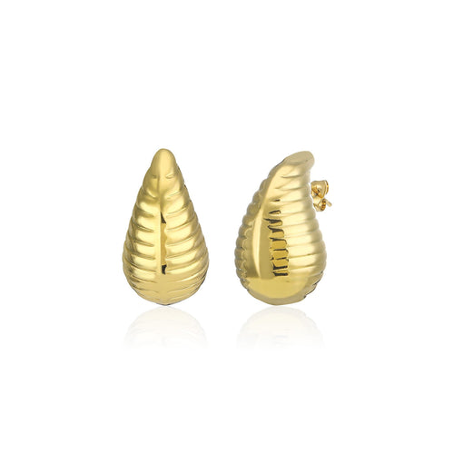 Gouden druppel oorbellen met ribbels. Deze oorbellen zijn 3.2cm lang. Gemaakt van Hoogwaardig Stainless Steel.
