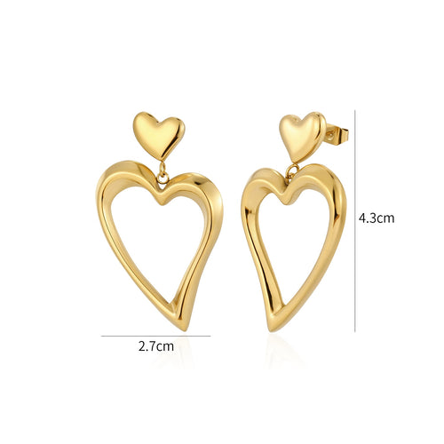 Oorstekers dubbel fancy hart goud zijn 4,3cm lang en 2,7cm breed. Gemaakt van hoogwaardig stainless steel.