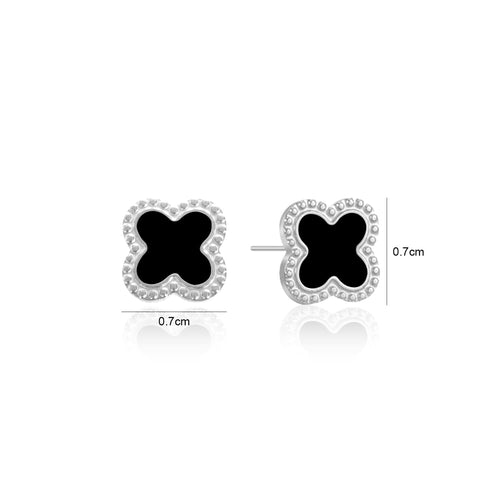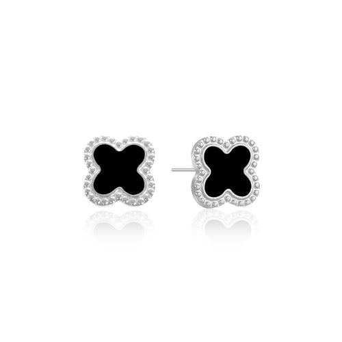 Zilveren stud oorbellen met zwart klavertjevier. Deze oorbellen zijn 0.7 cm breed. Gemaakt van Hoogwaardig Stainless Steel.
