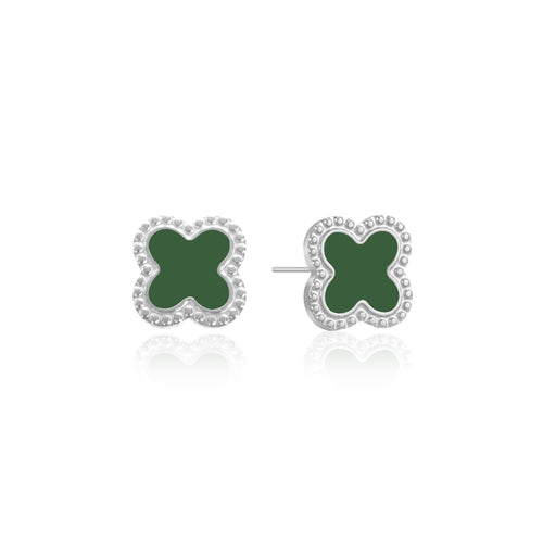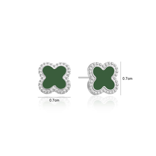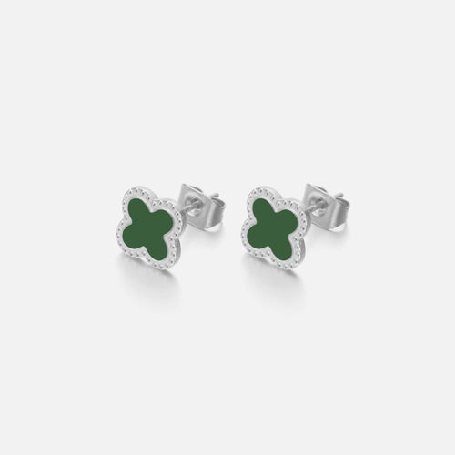 Zilveren stud oorbellen met groen klavertjevier. Deze oorbellen zijn 0.7 cm breed. Gemaakt van Hoogwaardig Stainless Steel.