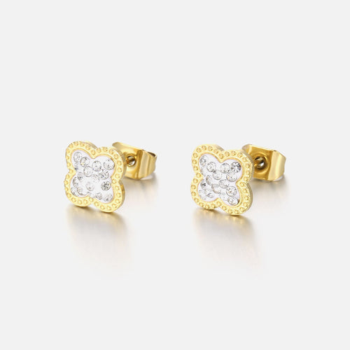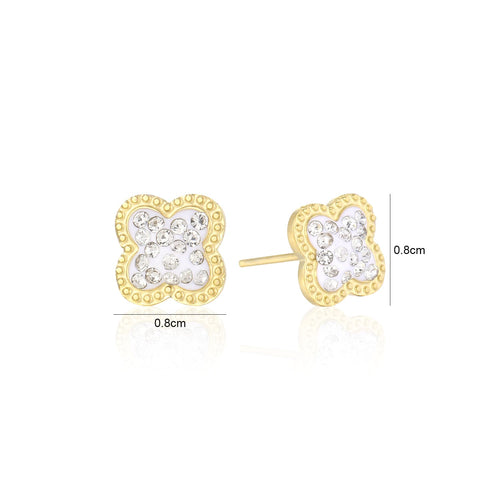 Gouden stud oorbellen met steentje klavertjevier. Deze oorbellen zijn 0.8cm breed. Gemaakt van Hoogwaardig Stainless Steel.