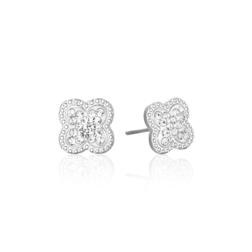 Zilveren stud oorbellen met steentje klavertjevier. Deze oorbellen zijn 0.8cm breed. Gemaakt van Hoogwaardig Stainless Steel.
