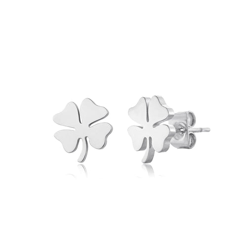 Zilveren stud oorbellen met klavertjevier. Deze oorbellen zijn 1cm breed. Gemaakt van Hoogwaardig Stainless Steel.