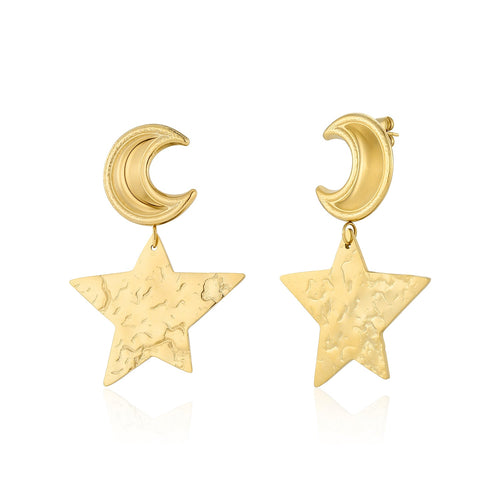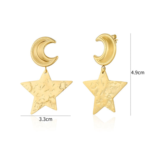 Oorstekers maan en ster goud zijn 4.9cm lang en 3.3cm breed. Gemaakt van hoogwaardig stainless steel.