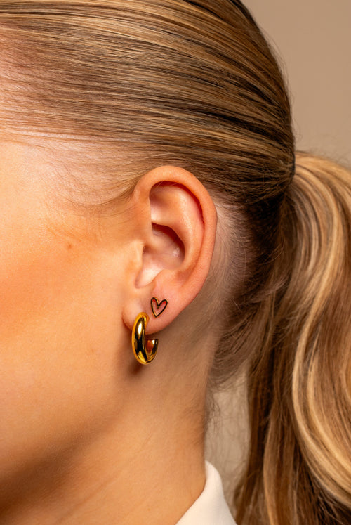 Gouden stud oorbellen met open hartje. Deze oorbellen zijn 0.5cm breed. Gemaakt van Hoogwaardig Stainless Steel.
