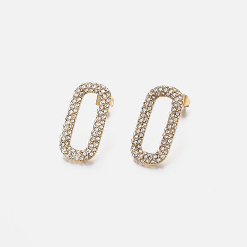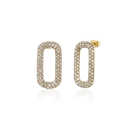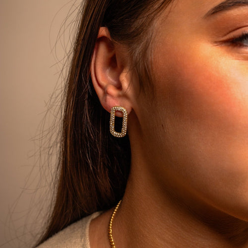 Gouden vierkant stud oorbellen met steentje. Deze oorbellen zijn 2.2cm lang. Gemaakt van Hoogwaardig Stainless Steel.