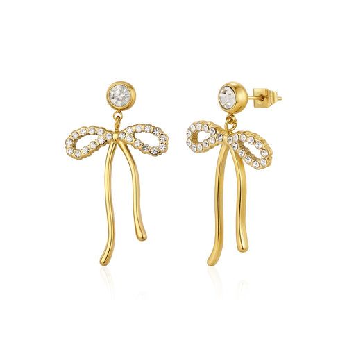 Oorstekers strik met steentjes goud zijn 3,7cm lang en 2,3cm breed. Gemaakt van hoogwaardig stainless steel.