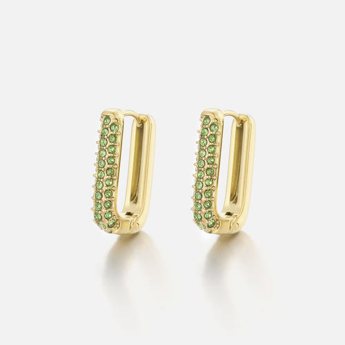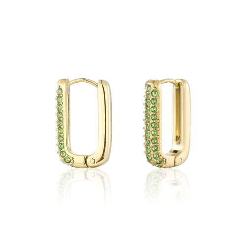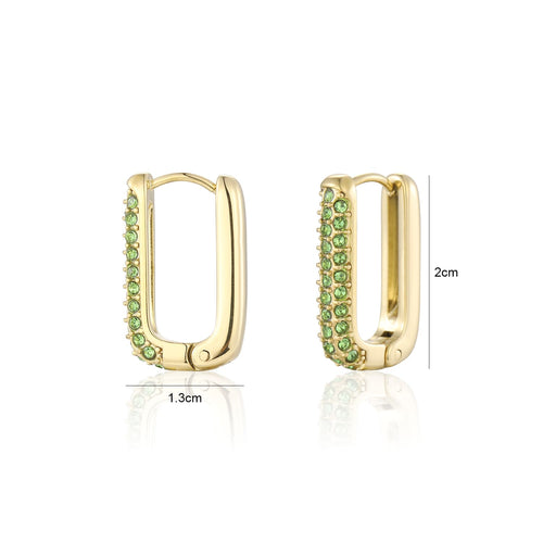 Gouden oorbellen met groene diamantjes. Deze oorbellen zijn 2cm lang. Gemaakt van Hoogwaardig Stainless Steel.