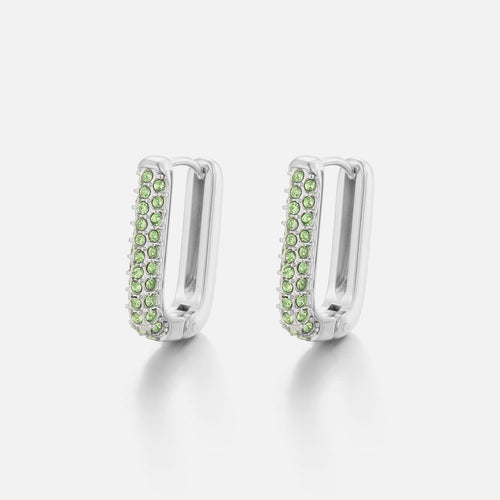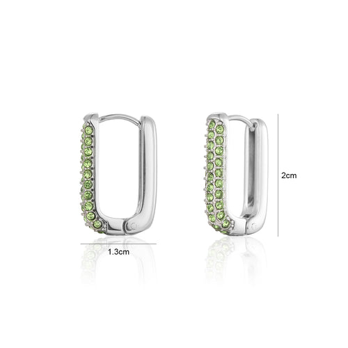 Zilveren oorbellen met groene diamantjes. Deze oorbellen zijn 2cm lang. Gemaakt van Hoogwaardig Stainless Steel.