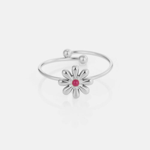 Zilveren ring met bloem en steentje. Verstelbaar naar jouw gewenste maat. Gemaakt van hoogwaardig stainless steel.