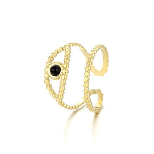 Gouden twee laags ring met oog. Verstelbaar naar jouw gewenste maat. Gemaakt van hoogwaardig stainless steel. Geluk sieraden.