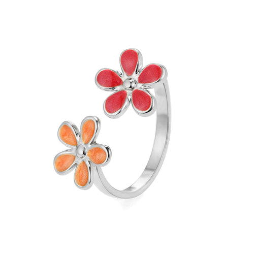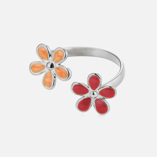 Zilveren ring gekleurde bloemen. Verstelbaar naar jouw gewenste maat. Gemaakt van hoogwaardig stainless steel.