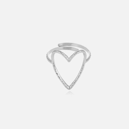 Zilveren open hart ring. Ring is verstelbaar naar jouw gewenste maat. Gemaakt van hoogwaardig stainless steel.