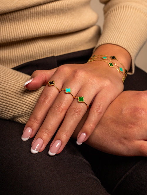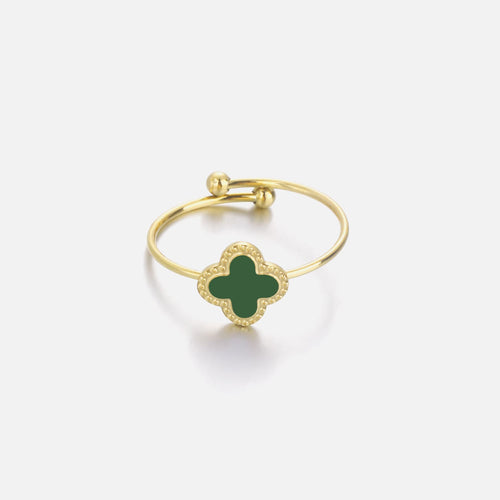 Gouden ring met groen klavertjevier. Ring is verstelbaar naar jouw gewenste maat. Gemaakt van hoogwaardig stainless steel. Geluk sieraden, klaver sieraden.