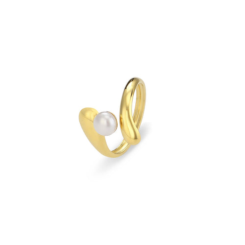 Gouden ring met parel. Verstelbaar naar jouw gewenste maat. Gemaakt van hoogwaardig stainless steel. Parel sieraden. (parel kan verkleuren door contact met water)