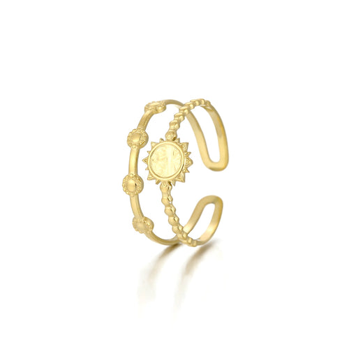 Gouden ring met zon. Verstelbaar naar jouw gewenste maat. Gemaakt van hoogwaardig stainless steel.