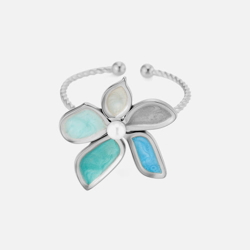 Zilveren ring met turquoise bloem. Verstelbaar naar jouw gewenste maat. Gemaakt van hoogwaardig stainless steel.