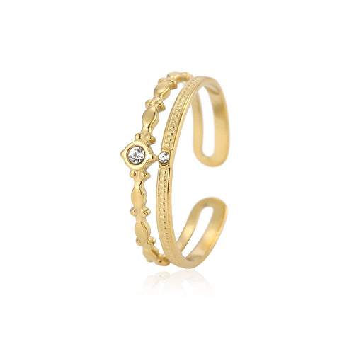 Gouden ring tweelaags strass. Verstelbaar naar jouw gewenste maat. Gemaakt van hoogwaardig stainless steel.
