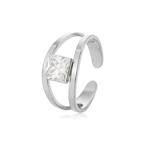 Zilveren ring vierkante steen. Verstelbaar naar jouw gewenste maat. Gemaakt van hoogwaardig stainless steel.