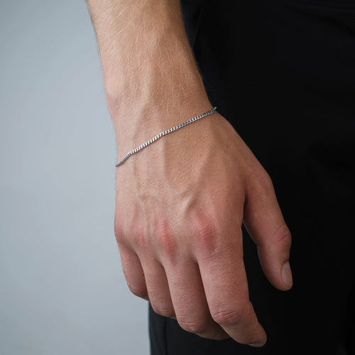 Zilveren armband. Lengte is 19cm en met 4cm verstelbaar. Gemaakt van hoogwaardig stainless steel.
