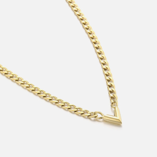 Gouden ketting met V. Lengte 40cm en nog eens te verlengen met 5cm. Gemaakt van hoogwaardig stainless steel.
