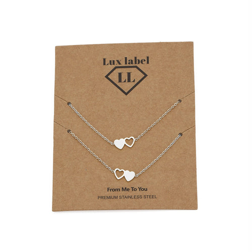 Zilveren armband set met dubbel hartje. 16 cm lang en kan nog eens met 4 cm verlengd worden. Gemaakt van hoogwaardig stainless steel. Dankzij het verlengstukje is de armband verstelbaar en geschikt voor verschillende polsmaten. Twee armbanden in één om te delen met een vriendin of geliefde.