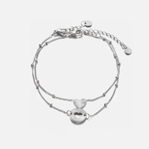 Zilveren armband set met in elkaar passende. 16 cm lang en kan nog eens met 4 cm verlengd worden. Gemaakt van hoogwaardig stainless steel. Dankzij het verlengstukje is de armband verstelbaar en geschikt voor verschillende polsmaten. Twee armbanden in één om te delen met een vriendin of geliefde.