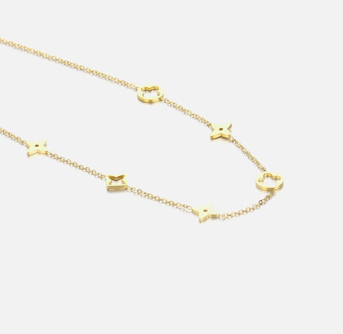 Gouden ketting met bloesem symbolen. Lengte 40cm en nog eens te verlengen met 5cm. Gemaakt van hoogwaardig stainless steel.