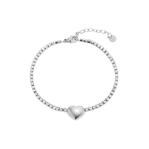 Tennis armband hartje zilver is 16 cm lang en kan nog eens met 4 cm verlengd worden. Gemaakt van hoogwaardig stainless steel. Dankzij het verlengstukje is de armband verstelbaar en geschikt voor verschillende polsmaten.