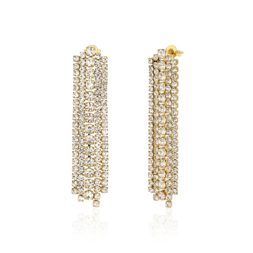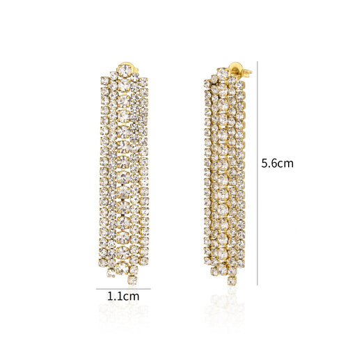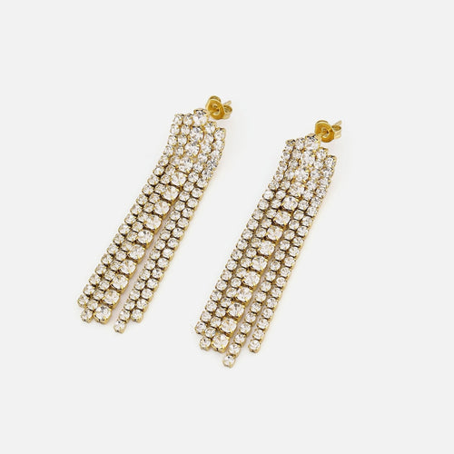 Gouden oorstekers met diamant tennis oorbellen. Deze oorbellen zijn 5.6cm lang. Gemaakt van Hoogwaardig Stainless Steel.