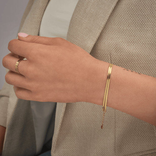 Wij vinden dat iedereen mooie sieraden moet kunnen dragen, ongeacht je maat. Daarom zijn veel van onze stukken verstelbaar. Te strak? Maak het losser. Te los? Trek het wat aan. Zo simpel is het. Of het nou een armband, ring, enkelbandje of ketting is, jij bepaalt hoe het zit. Want alleen als het lekker zit, voel je je er ook goed bij.