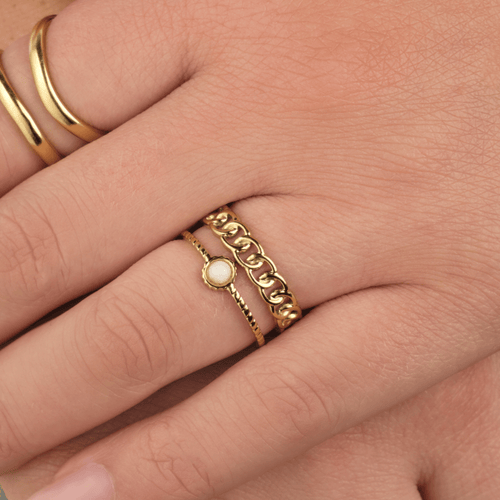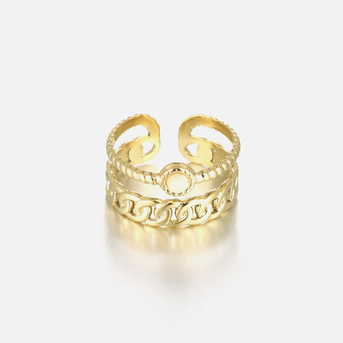 Gouden twee laags ring met witte steen. Verstelbaar naar jouw gewenste maat. Gemaakt van hoogwaardig stainless steel.