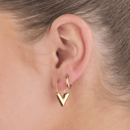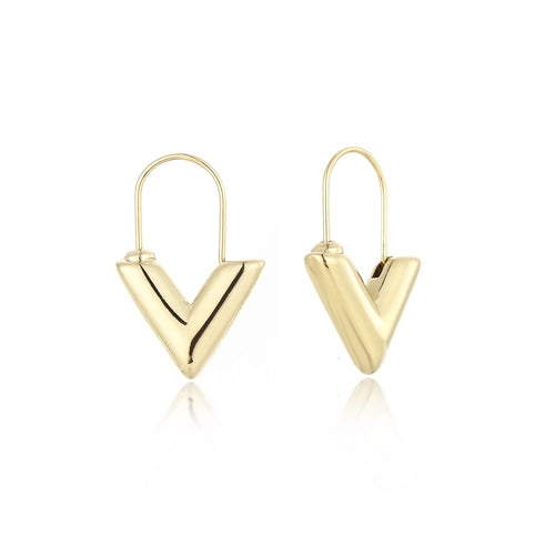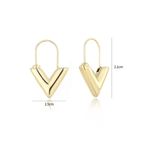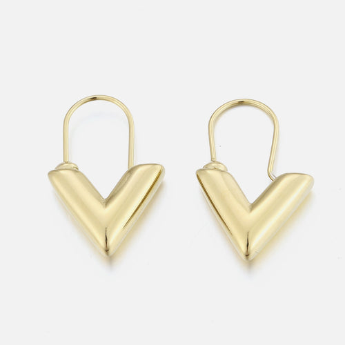 Gouden V oorbellen. Deze oorbellen zijn 2.1cm lang. Gemaakt van Hoogwaardig Stainless Steel.